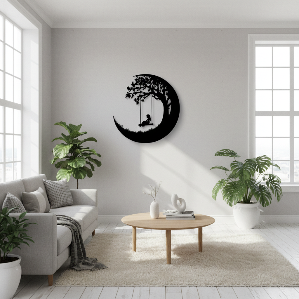Girl on a Swing Tree Silhouette - Whimsical Metal Wall Art